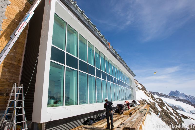 Planung der Gewerke Heizung, Lüftung und Sanitär durch EnerHaus Engineering der beiden total zu sanierenden Restaurants Eiger und Bollywood auf dem Jungfraujoch. Neben der sehr engen Platzverhältnissen für die gesamte Gebäudetechnikinstallation forderte auch die Objektlage und die damit verbundene Logistik alle Beteiligten.